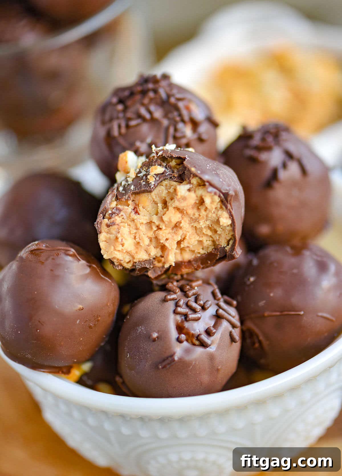 Peanut Butter Balls have graced dessert tables for generations, a beloved staple of no-bake candy recipes. At their core, these confections rely on four fundamental ingredients: peanut butter, butter, powdered sugar, and chocolate. The result is a delightfully soft, creamy interior with a rich peanut butter flavor, encased in a firm chocolate shell that offers a satisfying snap when bitten into.