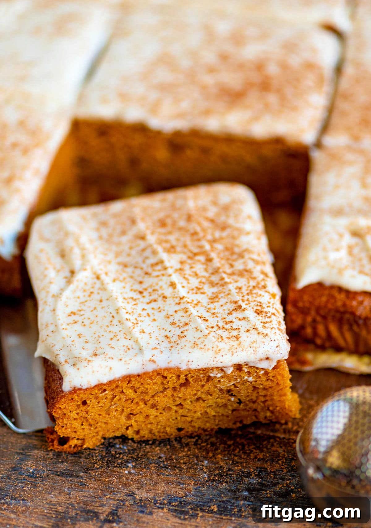 Storing Leftovers: Due to the cream cheese frosting, any leftover pumpkin bars should be stored in an airtight container in the refrigerator. They will remain wonderfully moist and flavorful for up to 3-4 days. For optimal freshness, consider cutting only the portions you plan to serve immediately.