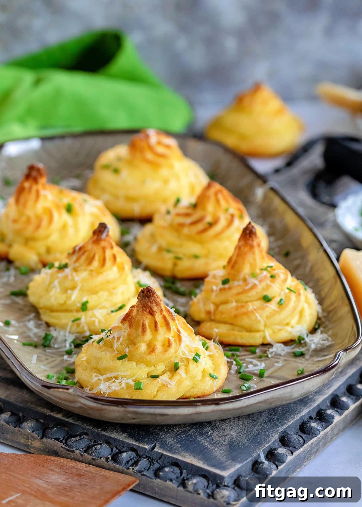The beauty of this recipe lies not only in its exquisite taste and appearance but also in its incredible practicality. Duchess Potatoes are the perfect make-ahead side dish, allowing you to prepare them entirely in advance, even freezing them in their individual portions. Imagine the convenience during the busy holiday season – simply pull them from the freezer and pop them straight into the oven, frozen, for a fresh-baked, impressive side with minimal effort on the day of your event. This feature alone makes them an absolute winner for any host!