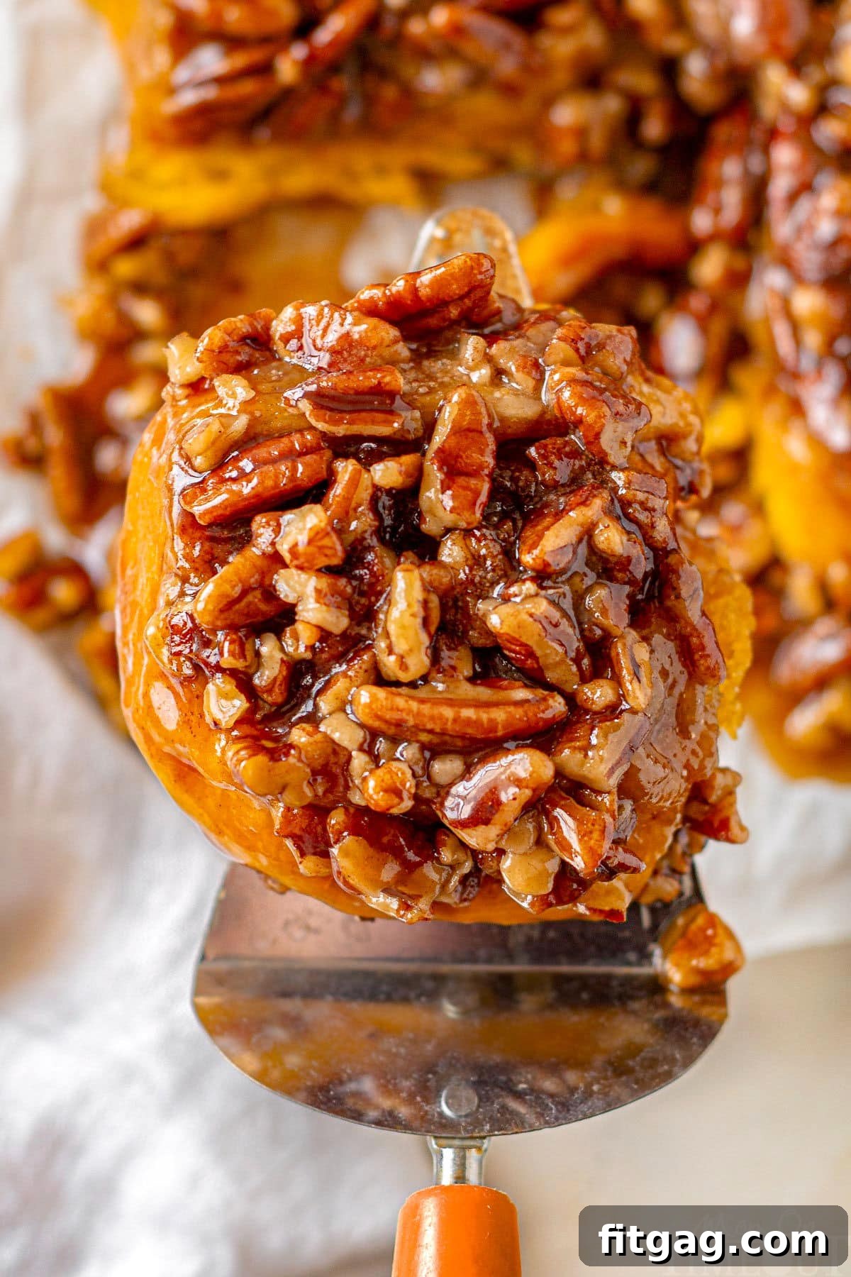 The “flip” is a signature step for sticky buns, as it’s what creates that gorgeous, glistening, sticky caramel topping over each roll. It’s truly part of the fun and visual appeal! However, if you prefer, you can certainly serve them straight from the pan with the caramel and pecans at the bottom. They will still be delicious, just not with that iconic sticky bun presentation.