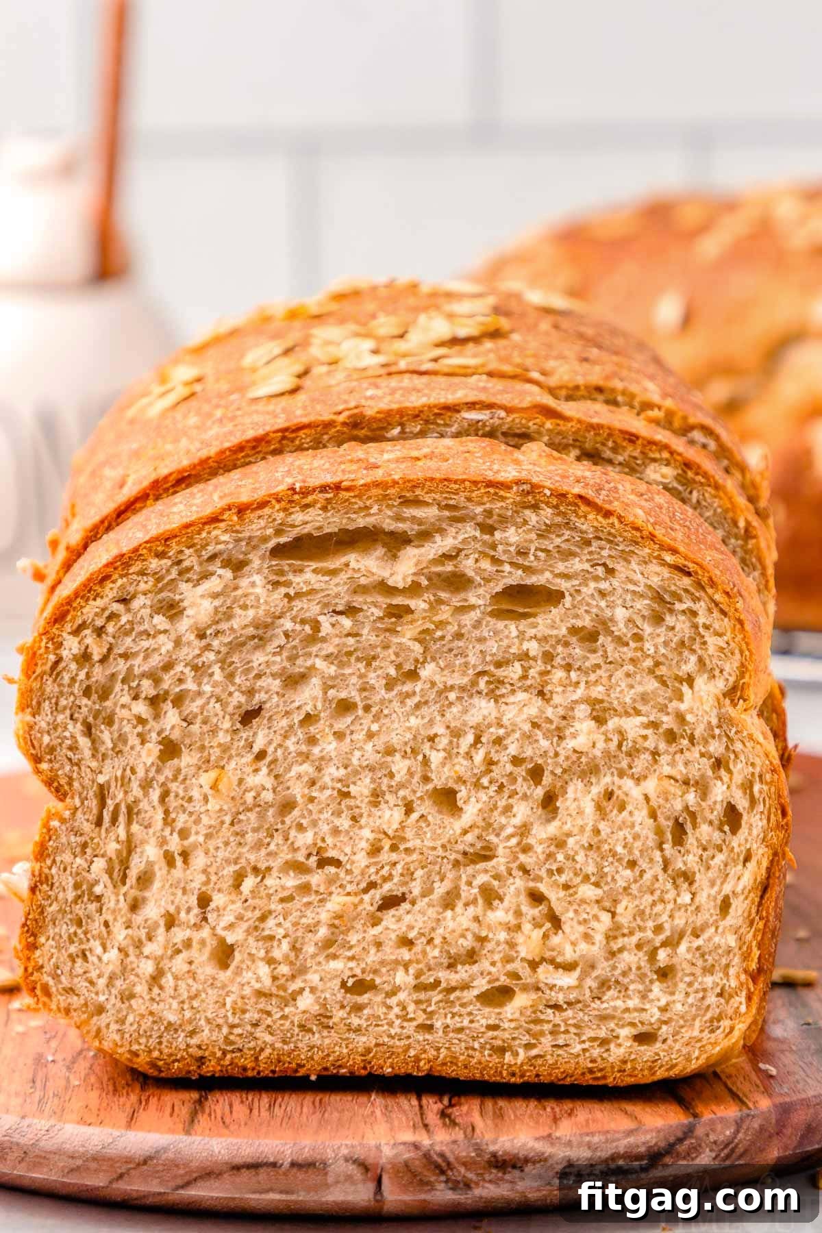 Wholesome & Hearty Goodness. This isn’t just tasty bread; it’s genuinely good for you. Packed with the nutritional benefits of whole wheat flour and fiber-rich oats, it offers a healthier alternative to many store-bought options. The oats also lend a delightful texture and added substance, making each slice wonderfully satisfying and filling, contributing to a truly wholesome eating experience for you and your family.