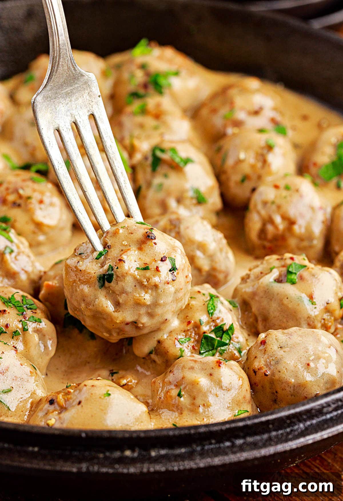 Welcome to the ultimate guide for crafting the most delectable **Authentic Swedish Meatballs** right in your own kitchen! Forget the long drives and crowded aisles of big-box furniture stores; this recipe brings the beloved taste of Sweden directly to your dining table. Our homemade Swedish Meatballs are a true comfort food masterpiece, featuring perfectly juicy, flavorful meatballs generously coated in a rich, creamy, and irresistibly tangy gravy. Served traditionally over a bed of fluffy mashed potatoes, tender egg noodles, or steamy white rice, this hearty meal promises to satisfy the whole family and likely leave you with cherished leftovers. It’s the ideal dish for those cozy evenings when you crave a substantial, soul-warming meal that’s surprisingly easy to achieve.