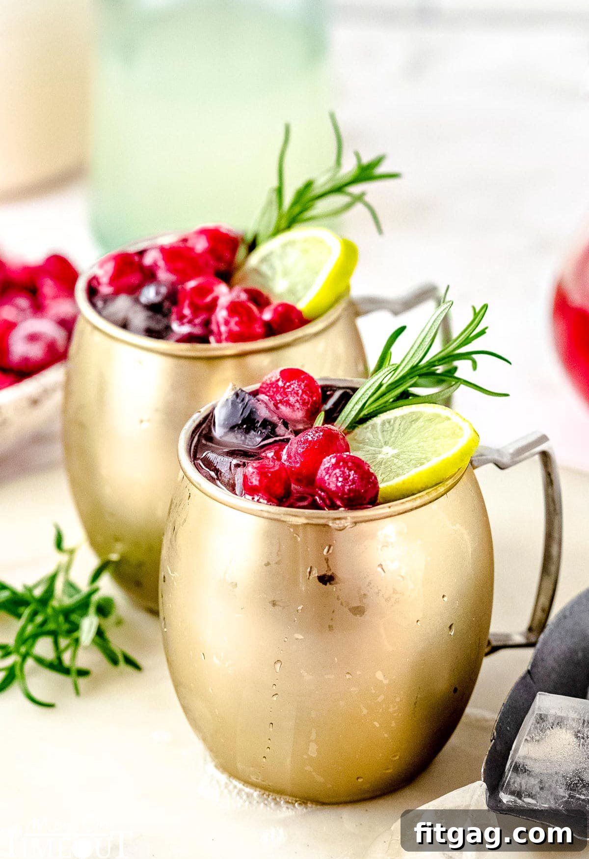 Rosemary Sprigs: This is the secret ingredient for an extra touch of festive flair and an unexpected aromatic twist. Gently clap the rosemary sprig between your hands before adding it to release its fragrant oils. The piney, herbal notes of rosemary wonderfully complement the cranberry and ginger, making this holiday Moscow Mule feel even more special and sophisticated.