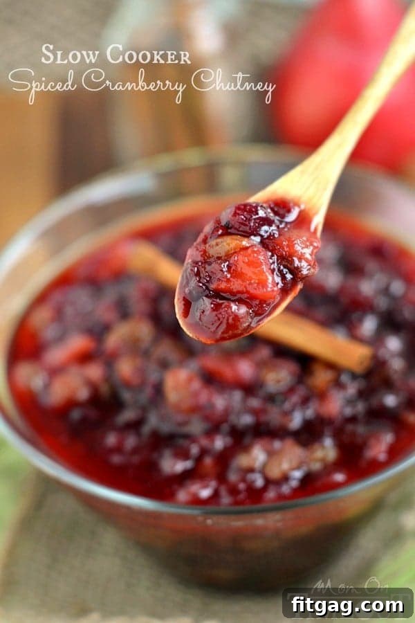 Elevate your holiday spread with the vibrant, refreshing flavor of this Slow Cooker Spiced Cranberry Chutney. This incredibly easy recipe promises an explosion of taste with minimal effort, requiring just 5 minutes of active prep time before your slow cooker takes over. As you prepare for festive gatherings like Thanksgiving or Christmas, remember to complement this delightful chutney with other essential holiday dishes. Consider pairing it with The BEST Dinner Rolls, a rich The Best Turkey Gravy Recipe, our beloved Best Ever Cranberry Sauce, or a succulent Slow Cooker Turkey Breast with Citrus and Herbs for a truly unforgettable feast.