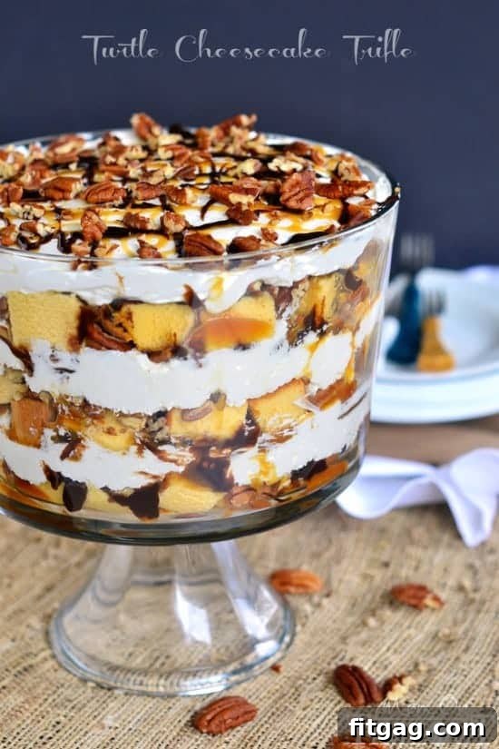 There’s something truly magical about a trifle. This classic layered dessert not only looks spectacular, promising an immediate “wow” factor at any gathering, but it’s also incredibly versatile and, often, surprisingly simple to assemble. Our Turtle Cheesecake Trifle takes this concept to a new level, combining beloved flavors of the classic turtle candy with a creamy, dreamy no-bake cheesecake and the comforting texture of pound cake. It’s an explosion of sweet, nutty, and rich sensations in every single spoonful.