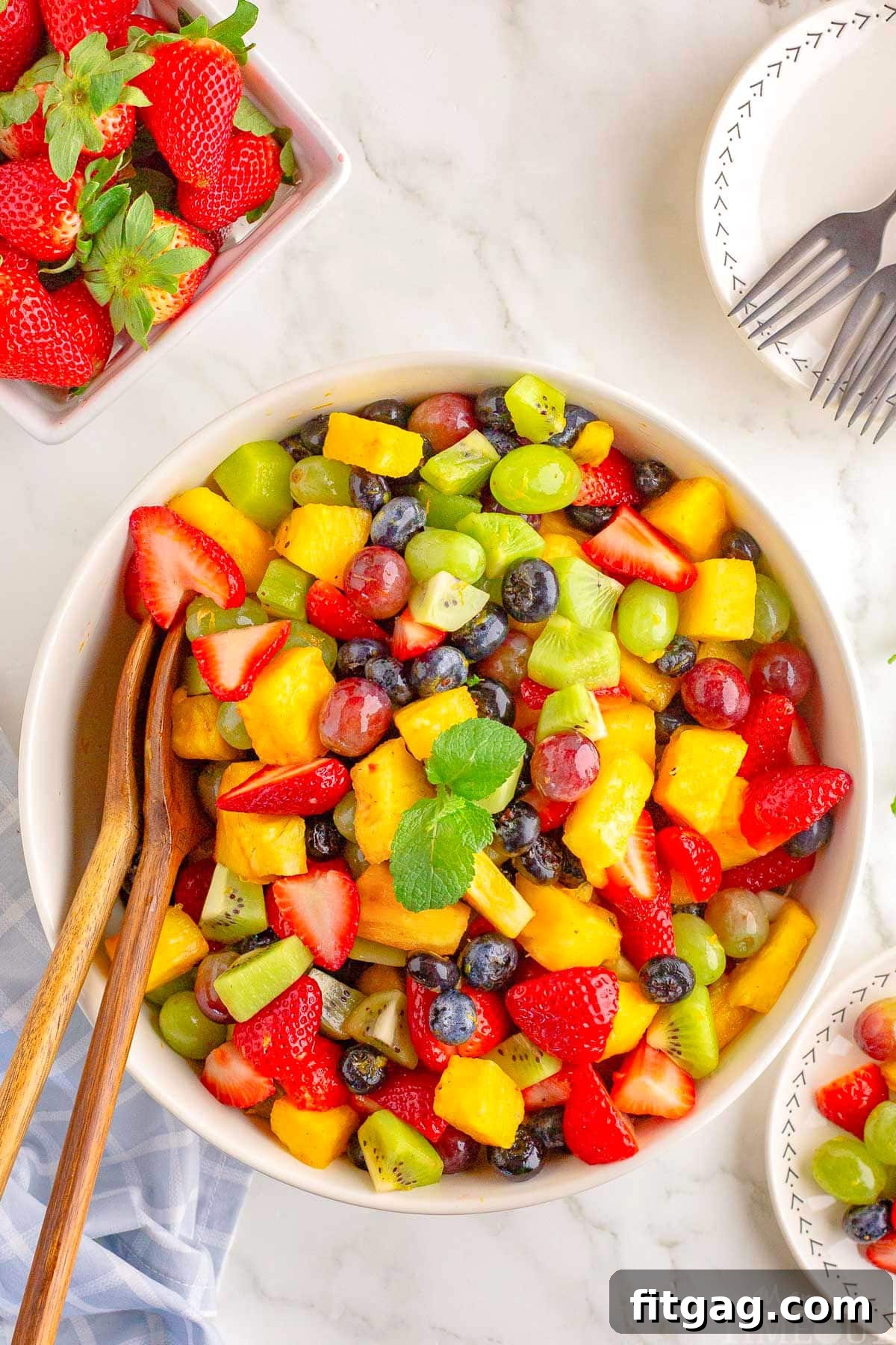 For the best possible results in terms of both taste and texture, we strongly recommend using fresh fruit exclusively for this recipe. Frozen fruit, while convenient for smoothies or other dishes, tends to develop a soft, mushy, and often watery texture once it thaws. This compromises the crispness and vibrant mouthfeel that make this fruit salad so enjoyable. Stick to fresh, ripe fruits for that perfect bite every time.