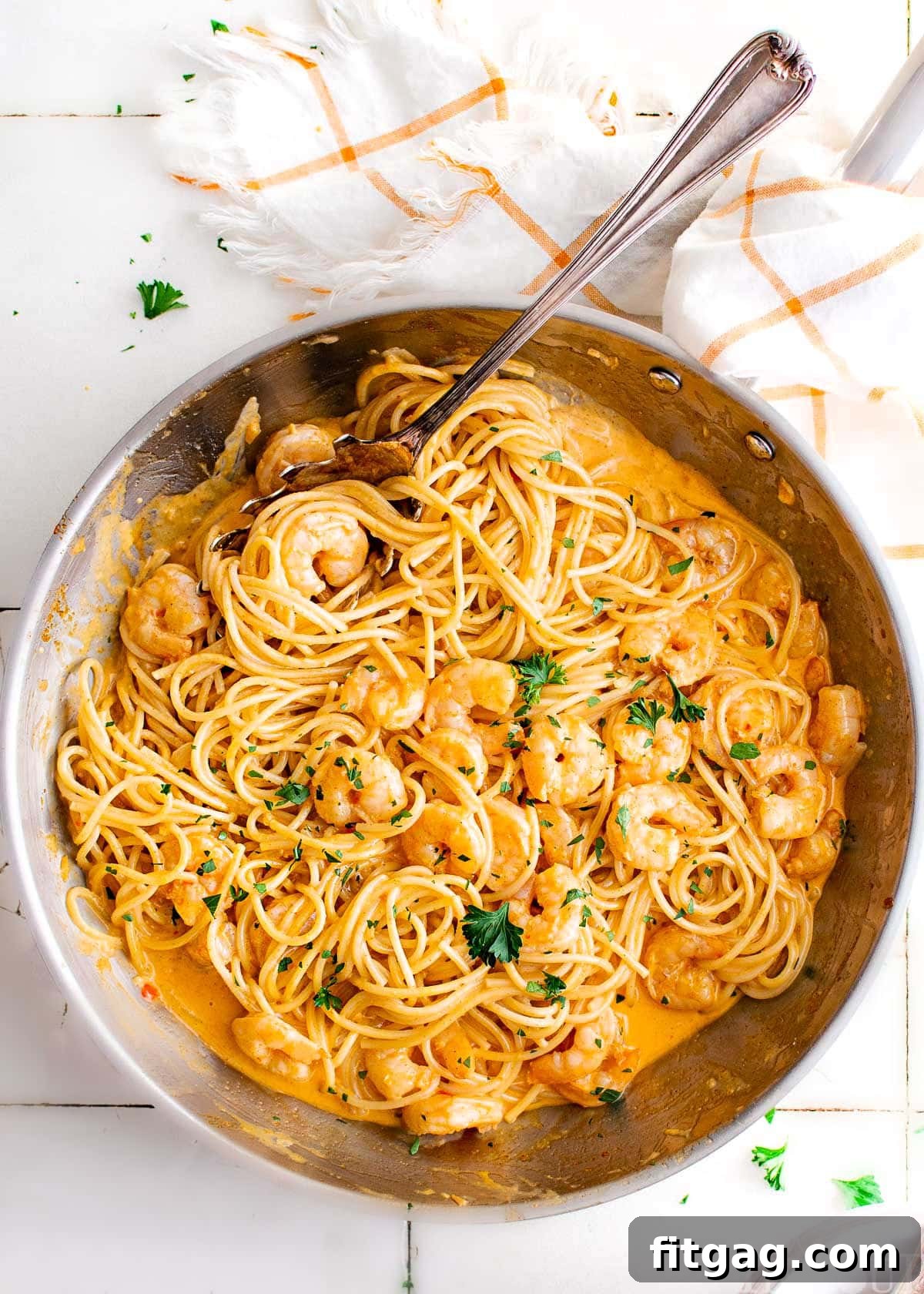 Best Reheating Practices: When reheating leftovers, it’s best to do so slowly over low heat on the stovetop. This method helps to avoid overcooking the shrimp and prevents the sauce from breaking. You may need to add a splash of water, milk, or even a little bit of that reserved pasta water (if you kept it!) to loosen the sauce and bring back its creamy consistency. Microwave reheating is an option, but be mindful of using short intervals at a lower power setting to prevent the shrimp from becoming tough.