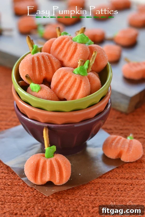 These Easy Pumpkin Patties are more than just a dessert; they are a delightful invitation to celebrate the vibrant spirit of fall. Their charming appearance, coupled with their simple no-bake preparation, makes them a perfect activity for families and a memorable treat for any occasion. Whether you’re planning a Halloween bash, a Thanksgiving feast, or simply craving a sweet taste of autumn, these adorable pumpkin candies are sure to bring smiles and joy.