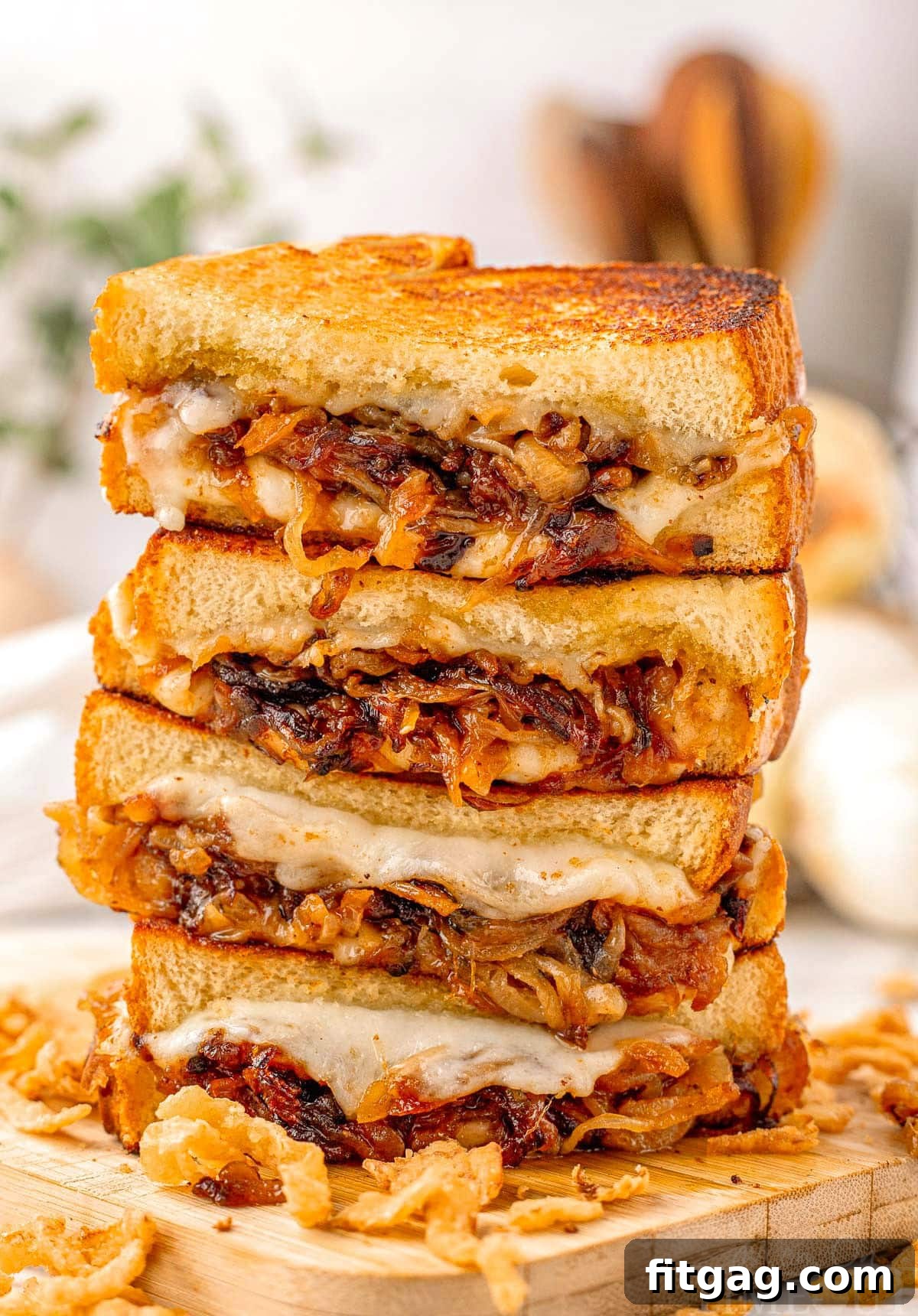 Slice and Serve Immediately: Once perfectly grilled, carefully remove the sandwiches from the skillet. Slice them in half diagonally for an appealing presentation. Serve these magnificent French Onion Grilled Cheese sandwiches immediately alongside your favorite crispy chips, a fresh green salad, or a warm bowl of soup for the ultimate comfort meal.