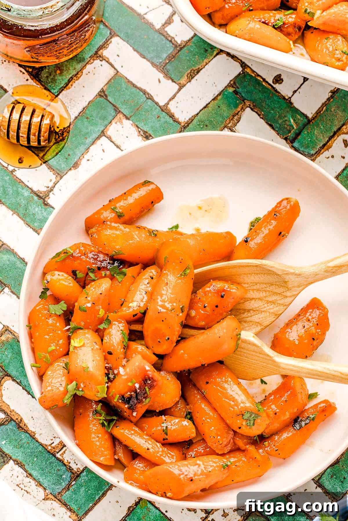 Should you prefer not to use the oven, this recipe can be easily adapted for stovetop cooking. After preparing the honey-butter-garlic glaze as described, add your prepped carrots directly to the skillet. Cook them over medium heat, stirring frequently, until they become tender and slightly caramelized. If you desire that lovely browned finish, you can transfer them to an oven-safe dish and briefly pop them under the broiler for a few minutes, keeping a close eye on them to prevent burning.