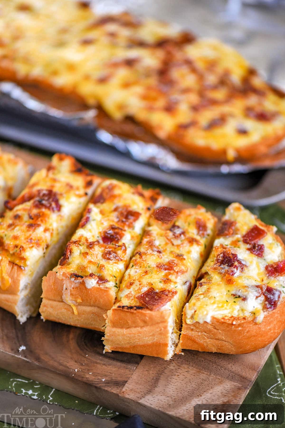 Less “Bready” Experience: If you prefer a cheesy bread with a more intense cheese-to-bread ratio or simply want a lighter option, consider gently hollowing out the bread a bit. After slicing the loaf lengthwise, carefully tear out a small amount of the soft interior crumb from each half. Proceed with the recipe as written, and you’ll find the cheese mixture takes center stage, while the bread still provides the perfect vessel.