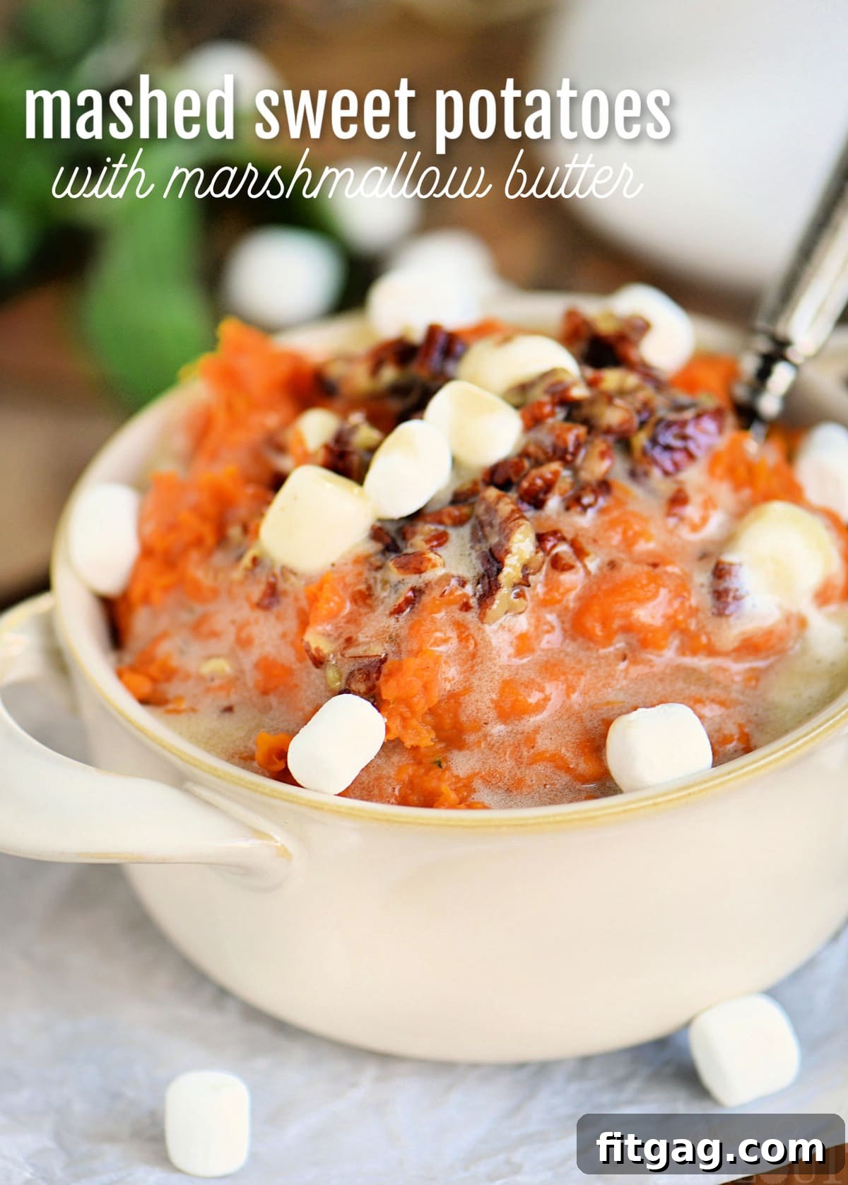 **Storage & Reheating:** Leftover mashed sweet potatoes can be stored in an airtight container in the refrigerator for up to 3-4 days. Reheat gently in the microwave or on the stovetop with a splash of milk or cream to restore moisture. The marshmallow topping is best made fresh but can also be briefly reheated.