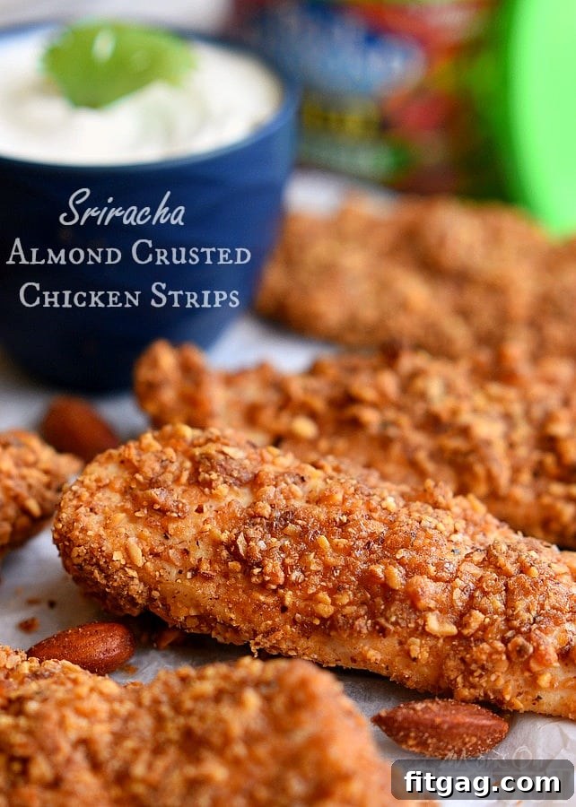 Unlike many fried chicken strip recipes that rely on heavy oils and excessive breading, our Sriracha Almond Crusted Chicken Strips are baked. This method significantly reduces fat content while still delivering a wonderfully crispy exterior. Almonds, a powerhouse of nutrients, contribute healthy fats, protein, and fiber, adding a nutritious boost to your meal. It’s a guilt-free way to enjoy a beloved comfort food, allowing you to indulge in flavor without compromising on health.