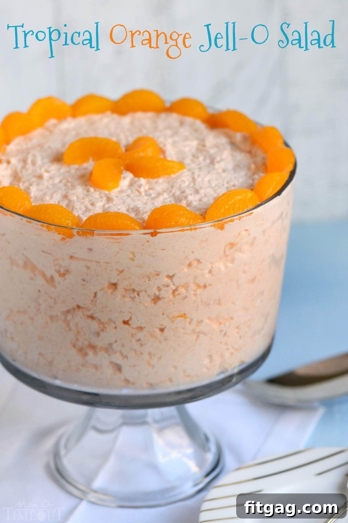 This recipe is generously portioned, designed to feed a crowd. It yields approximately 24 servings, making it absolutely perfect for large gatherings like family reunions, holiday feasts, or substantial potlucks. However, if you’re preparing it for a smaller family dinner or simply want a lighter treat, feel free to easily halve the recipe. It scales down beautifully without compromising on flavor or texture. Whether served as a vibrant side dish, a refreshing salad, or a light, satisfying dessert, this Tropical Orange Jello Salad is versatile, delicious, and always a welcome addition to any meal. Give it a try – you won’t be disappointed!