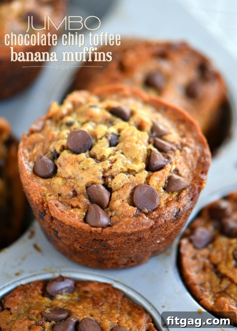 The post Ultimate Jumbo Banana Toffee Chocolate Chip Muffins first appeared on Fitgag.